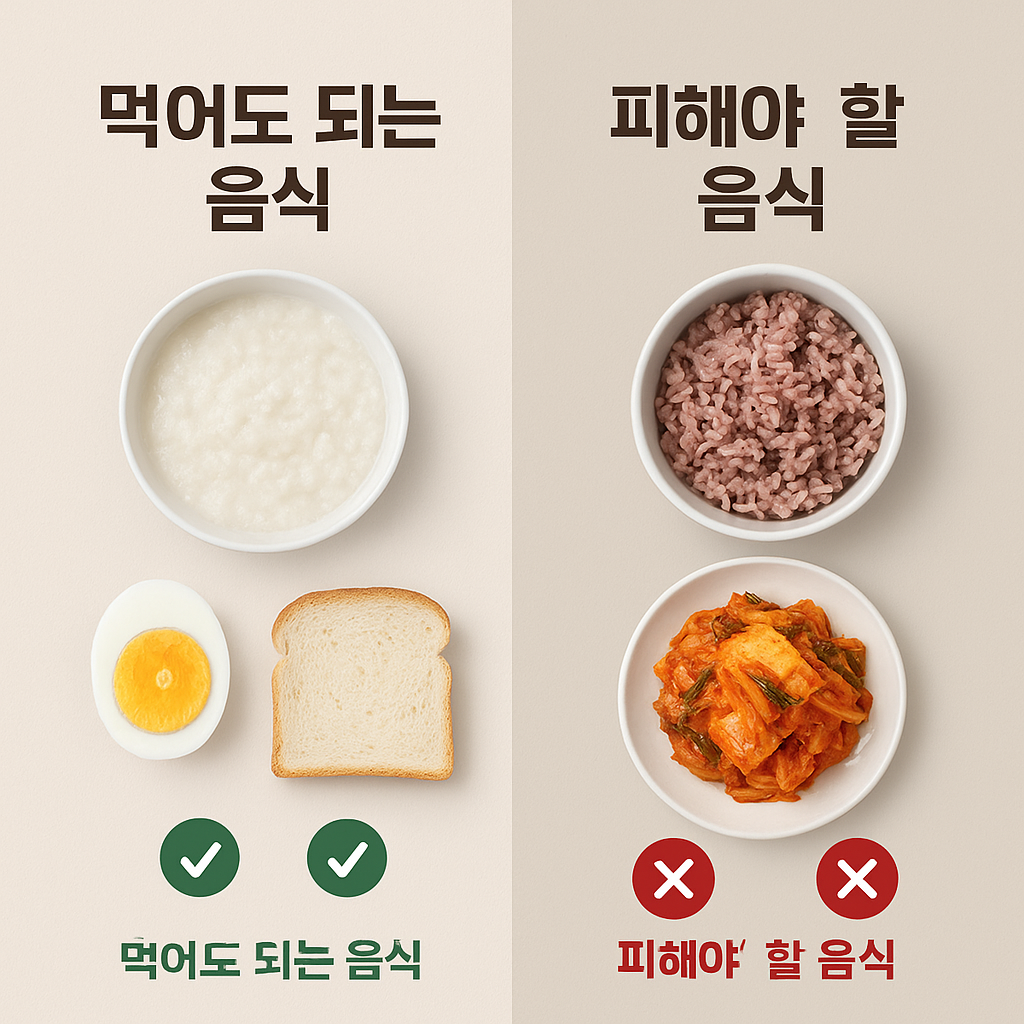 ✅ 소화 잘 되고, 섬유질·지방 적은 음식 위주