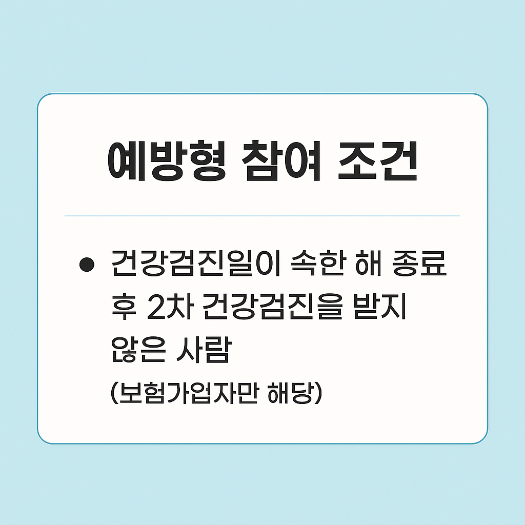 - 최근 건강검진 이력이 없거나 지표가 정상 범위이면 참여 불가